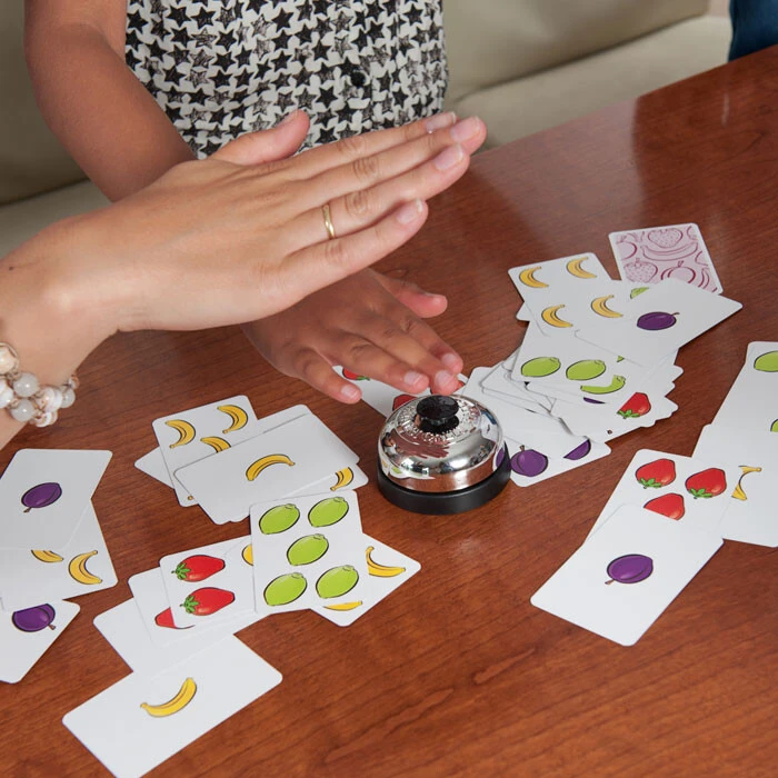 Iedere speler krijgt een gedekte stapel kaarten. Op elke kaart staan één of meer vruchten. Om beurten draait iedere speler een kaart om en legt deze op zijn eventueel eerder omgedraaide kaarten. Zo is voor iedere speler altijd maar één kaart zichtbaar. Als van een bepaalde vrucht precies 5 exemplaren zichtbaar zijn, proberen alle spelers zo snel mogelijk op de bel te drukken. Wie dat als eerste doet, krijgt alle open kaarten. Wie geen kaarten meer heeft, is uitgeschakeld. Wie blijft als laatste over?
