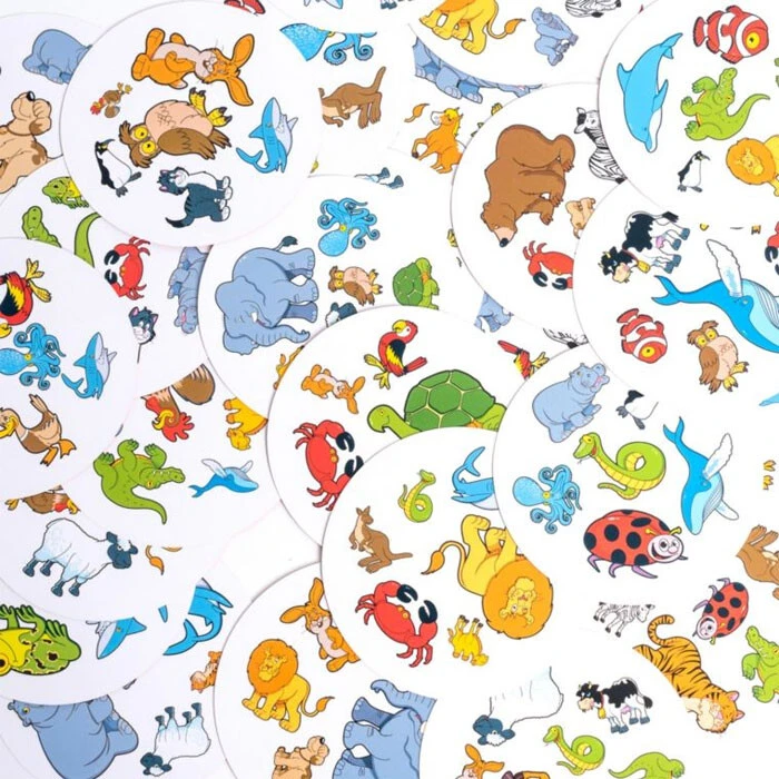 Dobble Kids is de vereenvoudigde versie van het populaire spel Dobble zodat ook de allerkleinsten kunnen spelen. Elke kaart in Dobble Kids toont 6 verschillende dieren, waarvan de grootte verschilt van kaart tot kaart. Elke 2 kaarten hebben exact 1 dier gemeenschappelijk. Er wordt telkens een kaart getoond en daarna een tweede. Diegene die 2 dezelfde dieren vindt, krijgt de eerste kaart. Dan wordt er een nieuwe kaart gedraaid en moeten de spelers opnieuw de identieke eruit halen. Wie op het einde de meeste kaarten heeft wint.