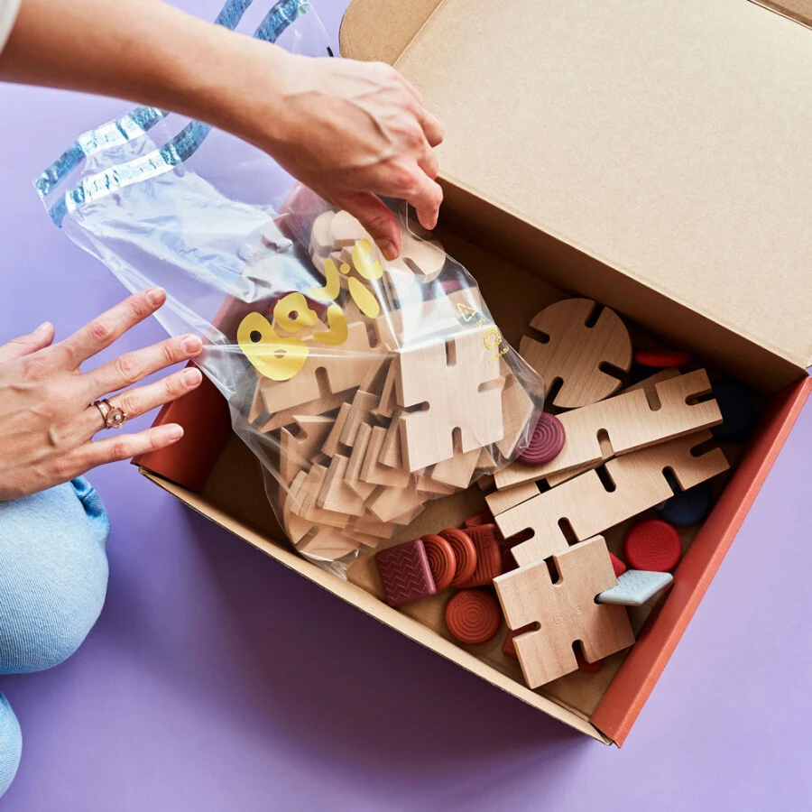 Een toren, een auto of een abstract kunstwerk; met de houten ‘Dreamer’ bouwset van BAVVIC zijn talloze unieke constructie sets te bouwen. Het open-einde materiaal laat kleine architecten en bouwers hun eigen fantasie volgen en ze kunnen hun mooiste creaties creëren.