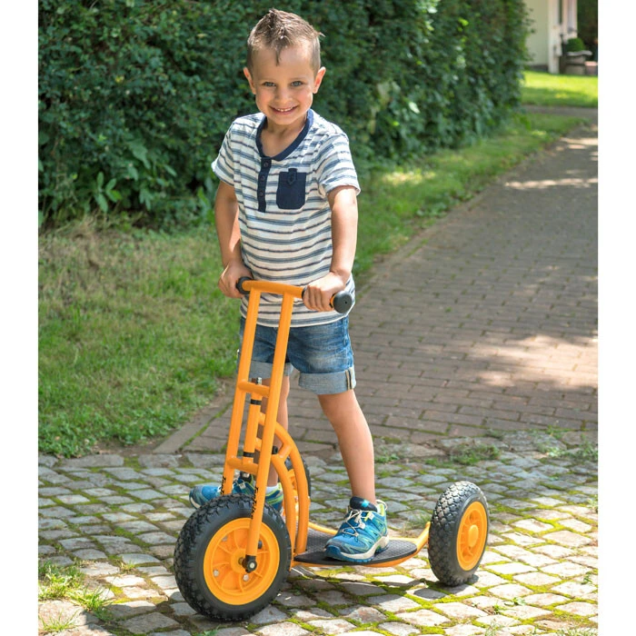 Deze TopTrike Step met treeplank is vervaardigd uit gepoedercoate stalen buizenframes en heeft een hoge roestbescherming. Deze Step is stabiel en duurzaam en bevordert de lichaamsbalans. De Toptrike Step met treeplank biedt een goede en veilige kennismaking met het steppen. De treeplank is voorzien van een anti-slip coating. De drie wielen zorgen voor extra steun en stabiliteit.
