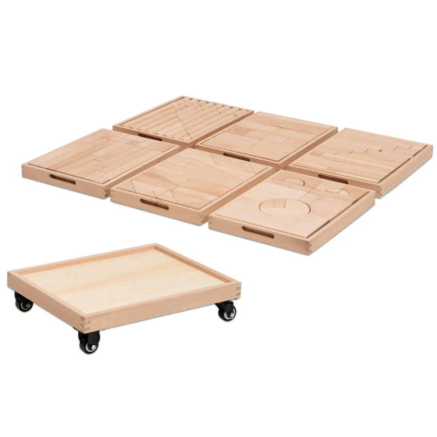 Kinderen vanaf 3 jaar kunnen de robuuste bouwblokken gemakkelijk vastpakken en spelenderwijs hun denkvermogen, creativiteit en motoriek ontwikkelen. Afhankelijk van de variant kunnen ze in verschillende speelmogelijkheden ook kennis maken met geometrie. Daartoe zijn op de binnen-bodem van elke afzonderlijke lade lijnen in de vorm van de verschillende bouwblokken gedrukt. Dit helpt de kinderen om de blokken bewust op de juiste plaats te leggen volgens het patroon. Zo worden ze zich nog meer bewust van alle geometrische vormen. Ze trainen vorm-grootte matching, congruentie en hand-oog coördinatie.