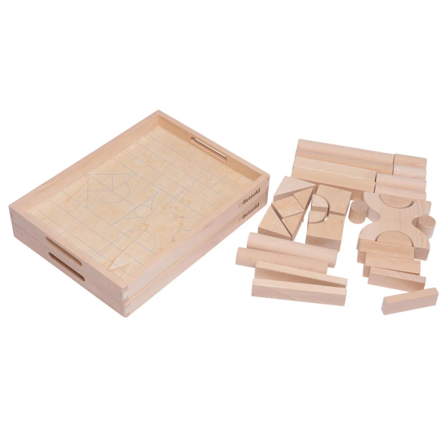 Kinderen vanaf 3 jaar kunnen de robuuste bouwblokken gemakkelijk vastpakken en spelenderwijs hun denkvermogen, creativiteit en motoriek ontwikkelen. Afhankelijk van de variant kunnen ze in verschillende speelmogelijkheden ook kennis maken met geometrie. Daartoe zijn op de binnen-bodem van elke afzonderlijke lade lijnen in de vorm van de verschillende bouwblokken gedrukt. Dit helpt de kinderen om de blokken bewust op de juiste plaats te leggen volgens het patroon. Zo worden ze zich nog meer bewust van alle geometrische vormen. Ze trainen vorm-grootte matching, congruentie en hand-oog coördinatie.