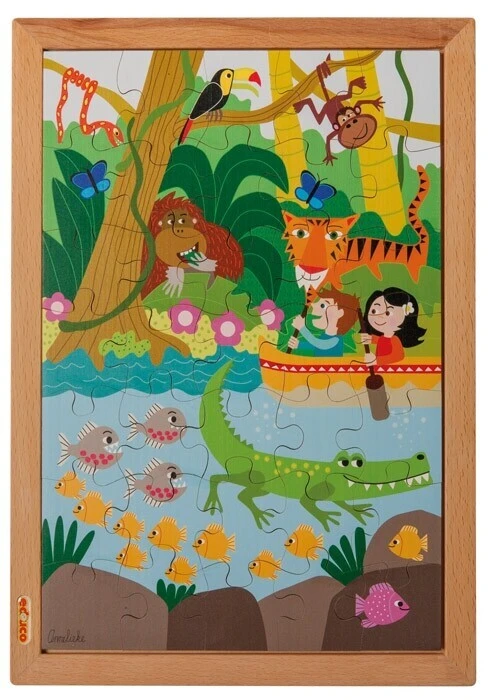 Naast veel puzzelplezier biedt deze puzzel ook veel mogelijkheden om de woordenschat te ontplooien. Deze puzzel is onderdeel van een serie onder en boven puzzels met de thema’s in de jungle, in de tuin, in de zee en in het bos.