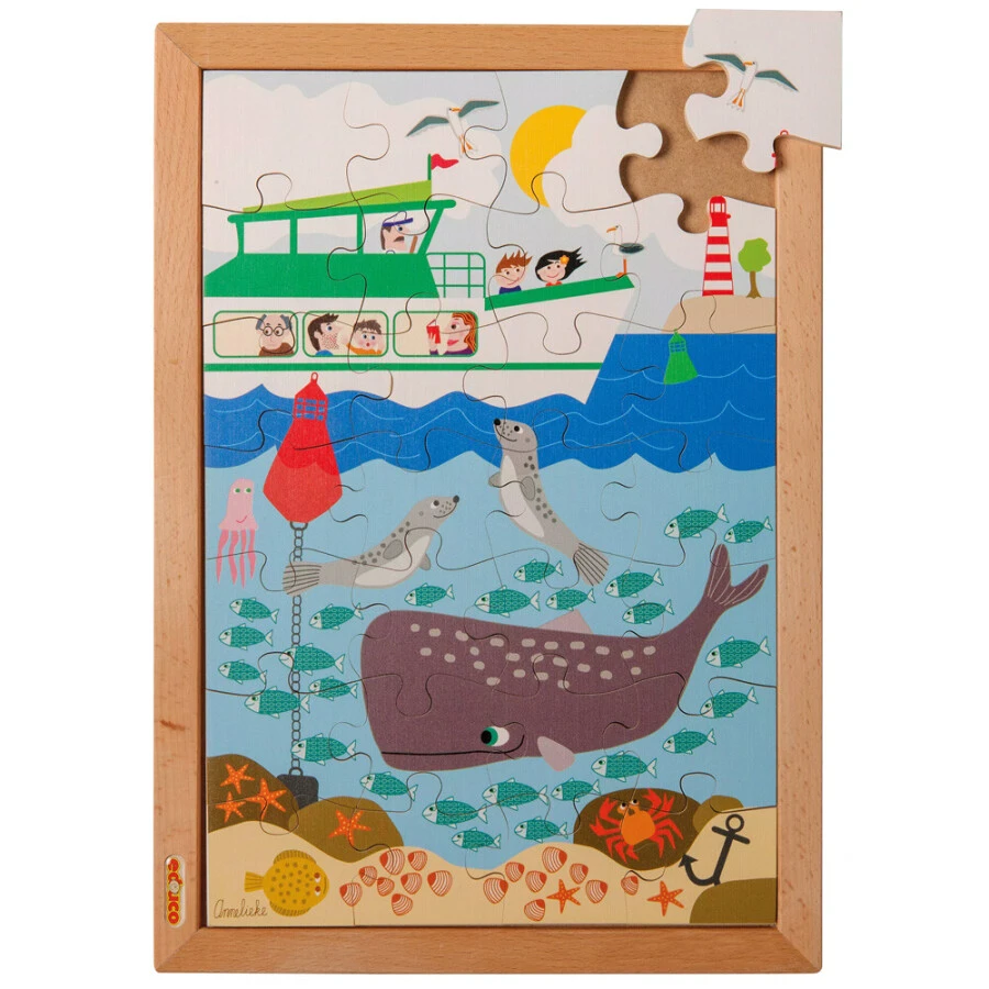 Naast veel puzzelplezier biedt deze puzzel ook veel mogelijkheden om de woordenschat te ontplooien. Deze puzzel is onderdeel van een serie onder en boven puzzels met de thema’s in de jungle, in de tuin, in de zee en in het bos.