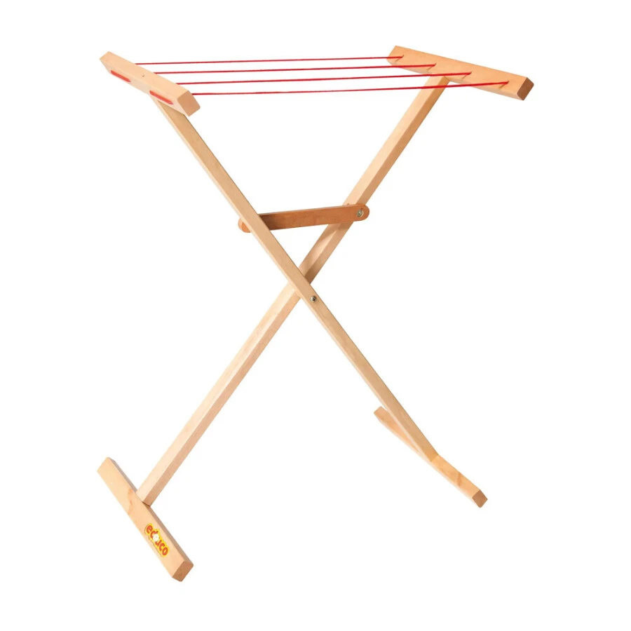 Een houten droogrekje van Educo. Het droogrek heeft de volgende afmetingen: 54 x 32 x 67 cm (l x b x h). Het droogrekje is geschikt voor kinderen vanaf 3 jaar.
