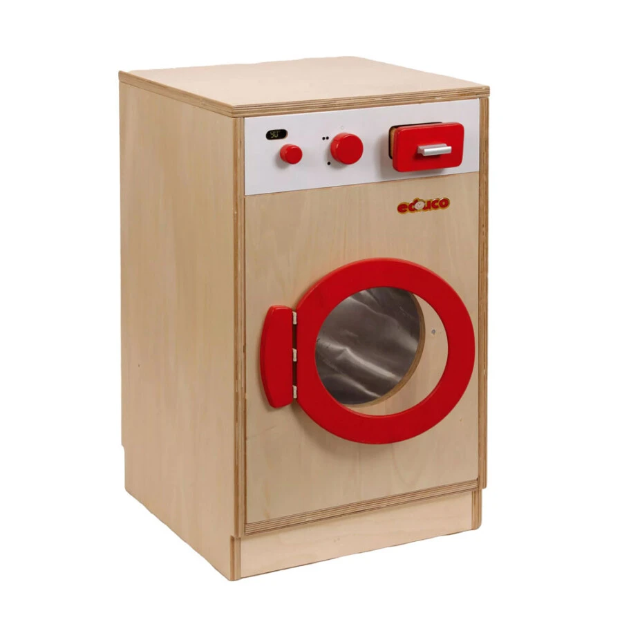 Een wasmachine van Educo voor kinderen als onderdeel van een compleet keukenblok. Dit blok heeft de afmeting: 43 x 40 x 62 cm (l x b x h) en is geschikt voor kinderen vanaf 3 jaar.