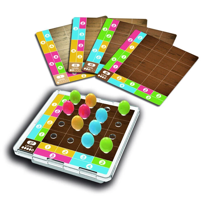 Columbus’ Egg vereist logisch denken! De eieren moeten volgens de legregels op de juiste vakjes worden gelegd. De aanduidingen voor de rijen en onder de kolommen geven hints hoeveel eieren van welke kleur op welk vakje van het speelbord moeten worden gelegd. Maar de opdrachten worden steeds moeilijker! Het logische spel Columbus’ Egg biedt in totaal 40 verschillende opgaven in 4 moeilijkheidsgraden. Lukt het jou om alle opdrachten op te lossen? Begin met een makkelijke puzzel en werk je weg omhoog naar de moeilijkere. Als je vastloopt, kun je in het oplossingenboekje kijken.
