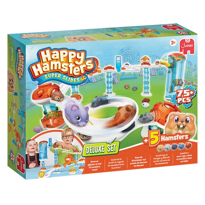- Met meer dan 75 onderdelen om de racebaan te bouwen, inclusief 5 schattige hamsters!