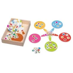 Het spel bevat opdrachtkaarten die samen met de gekleurde houten cirkels de mindmap vormen. Centraal staat de opdracht, daarom heen komen de vertakkingen. Kinderen kunnen uit de bijgeleverde fiches afbeeldingen selecteren om de mindmap te vullen. De thema’s op de opdrachtkaarten zijn heel divers, van kleuren tot de inrichting van een huis. Bij de opdrachtkaart met kleuren sorteren de kinderen fiches op kleur. Gele onderwerpen komen op de gele cirkel, rode op de rode cirkel, enzovoort. Bij de opdrachtkaart in en om het huis komen bijvoorbeeld onderwerpen die met de tuin te maken hebben op groen, onderwerpen uit de badkamer op blauw, en met de keuken op rood. Met de achterkant van de 6 opdrachtkaarten kunnen eigen mindmaps gecreĆ«erd worden. De houten cirkels in de basiskleuren rood, blauw, geel en groen zitten er tweemaal in. Op deze manier kunnen 2 (groepjes) kinderen gelijktijdig mindmappen. Leeftijd: vanaf 4 jaar.