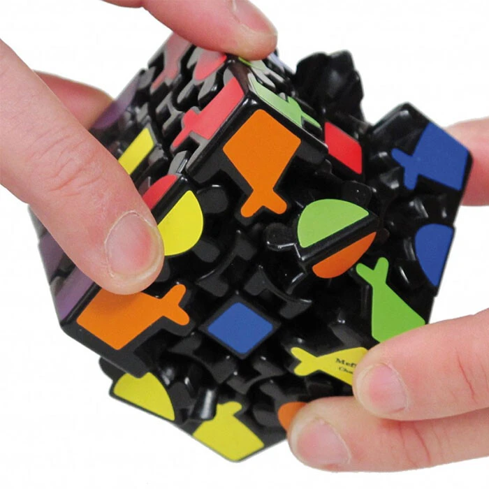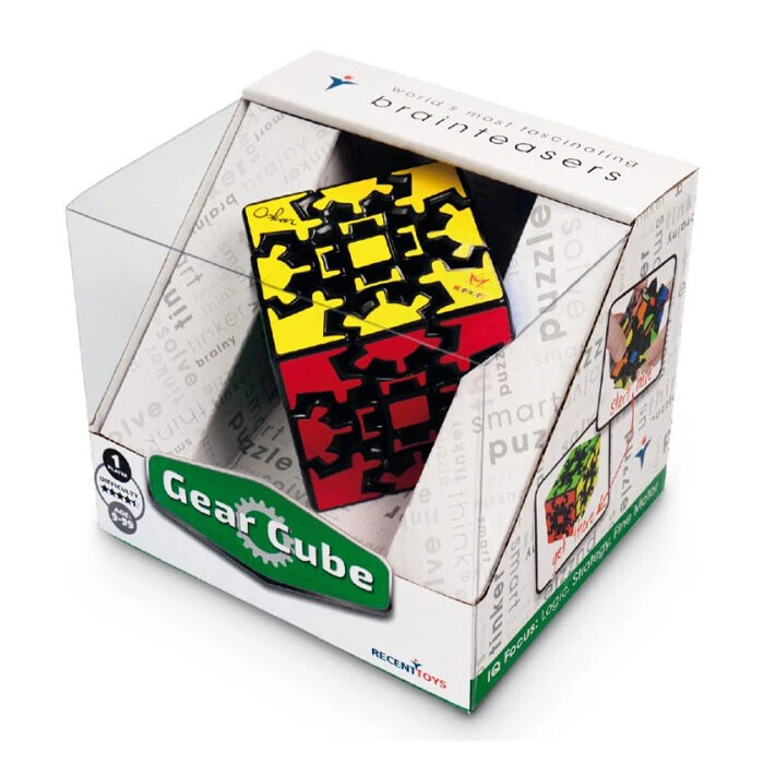 Gear Cube is een breinbreker met twee uitdagingen: draai de diverse delen terug naar zijn originele vorm én match daarbij de kleuren zodat elk vlak een effen kleur weergeeft. Door de complexe mechaniek, vergt elke volledige rotatie twaalf omwentelingen van 90 graden. Ook leuk: de Gear Cube is ontworpen door een Nederlander!