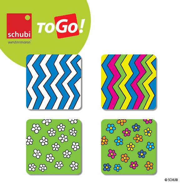 In de spellen uit de serie Schubi ToGO! staan het herkennen, vergelijken en onderscheiden van vormen, kleurencombinaties, patronen, kleine hoeveelheden en getallen, letters of kleuren, spiegelbeelden en het toewijzen van rechts-links-boven-beneden centraal.