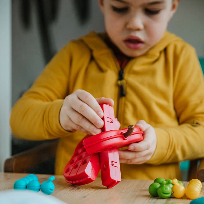 Drie uitgehongerde rupsen willen van dezelfde appel eten. Lukt het jou om hun zo te buigen dat zij allemaal op de appel passen? Deze breinbreker laat je hersens kraken! De rupsen zijn, net als het spelbord, verstelbaar.