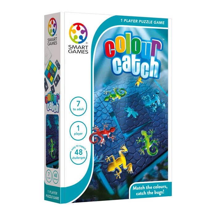 Colour Catch is een prachtig denkspel waarin kleuren van kikkers en salamanders gecombineerd moeten worden om de insecten te vangen. Maar pas op, de dieren zijn transparant en nemen de kleur aan van het deel van het spelbord waarop ze worden geplaatst. Bevat maar liefst 60 opdrachten die oplopen in moeilijkheidsniveau. De oplossingen staan binnenin.