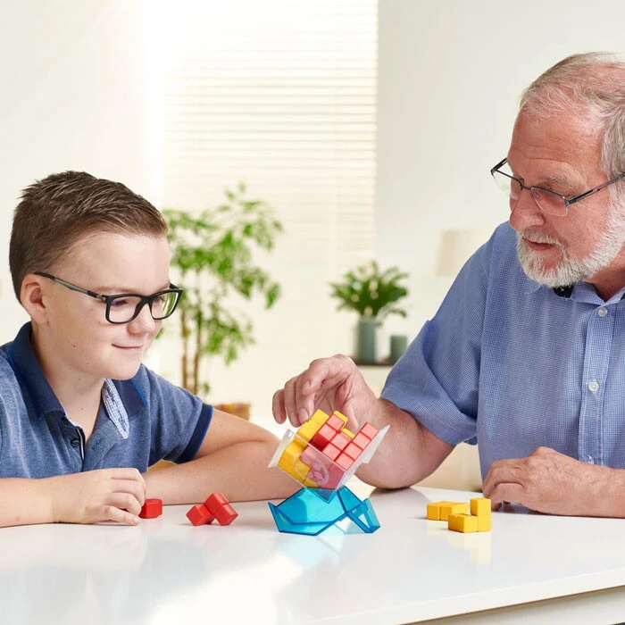 Plaats de rode of gele stukken strategisch zodat de kubus meer van uw kleur bovenop heeft! In de modus voor 1 speler kun je 3D-bouwvaardigheden ontwikkelen met de 80 uitdagingen.