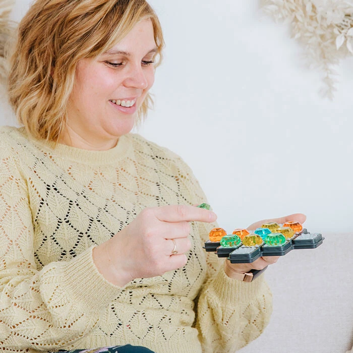Volg de aanwijzingen en vind de rode diamant! Daal af in de Smart Games diamantmijn en graaf alle juwelen op. Gebruik de ‘mijn’ van informatie aangeboden door de hints en aanwijzingen in elke uitdaging om de locatie van de rode diamand te achterhalen. Hoe dieper je graaft, hoe meer je deductievaardigheden worden getest!