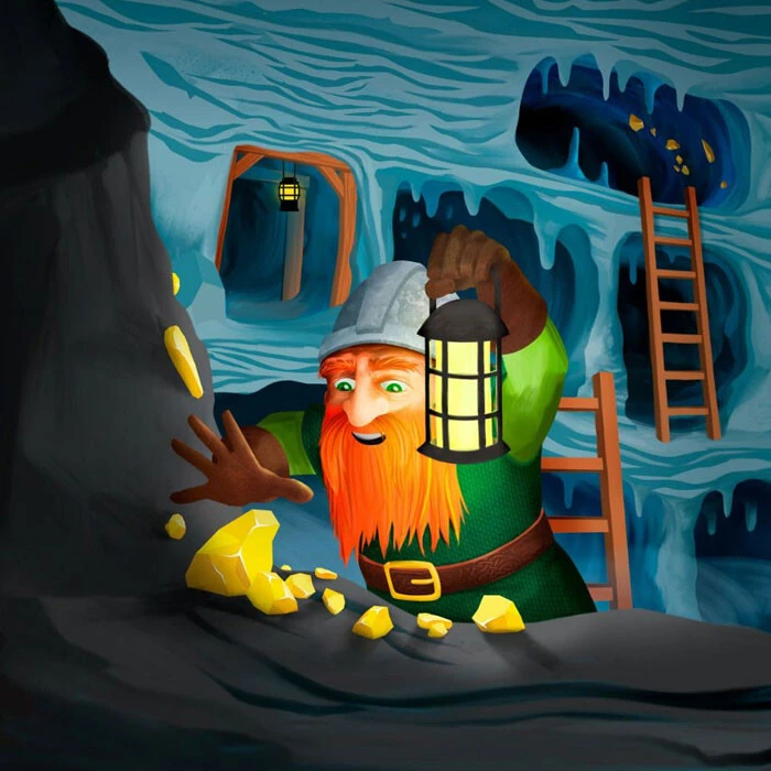 Goldmine is een denkspel waarbij je de dwerg gaat helpen om het goud te bereiken. Iedere opdracht geeft weer waar de dwerg en het goud zich bevinden. Daarna begint de uitdaging. De speler moet de ladders op het bordje plaatsen zodat de dwerg bij alle schatten kan.