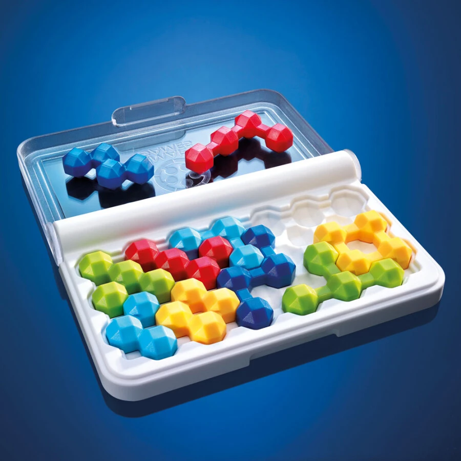 Bij IQ Twins zijn er van elk puzzelstuk twee, voor dubbel zoveel puzzelplezier. Maar hoewel de puzzelstukken in elk paar hetzelfde lijken, toch zijn ze verschillend. Het ene puzzelstuk moet je namelijk onder een hoek van 90° op het spelbord leggen, terwijl het andere stuk enkel onder een hoek van 45° past. Dit IQ-spel in een handig reisformaat bevat 120 opdrachten van starter tot wizard en is geschikt voor zowel kinderen als volwassenen.