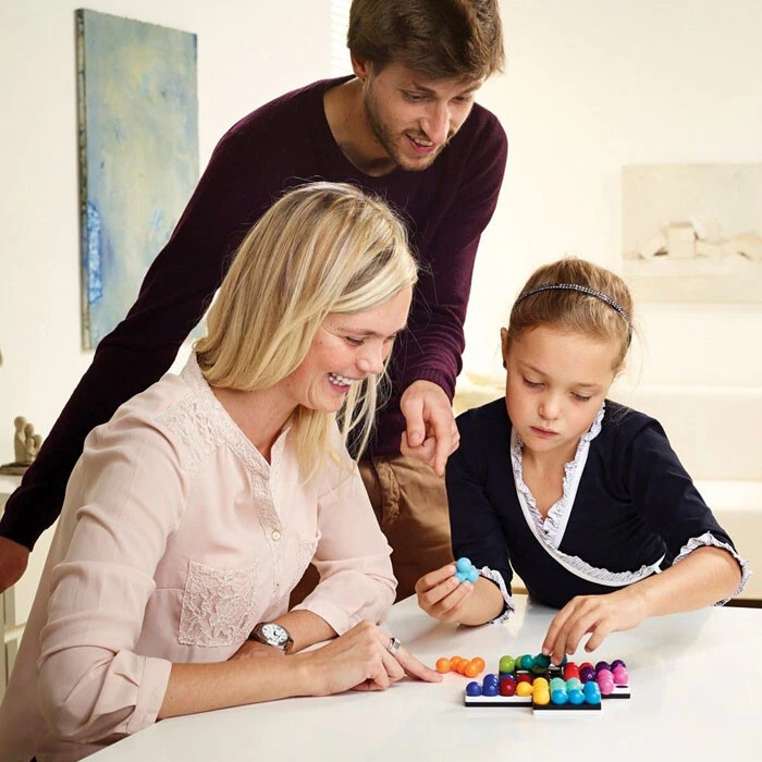 Klik en speel! Ontelbaar veel opdrachten en oplossingen… maar kan jij er één vinden? Klik de 4 magnetische spelborden willekeurig tegen elkaar en je bent klaar om te spelen. Plaats de 12 kleurrijke puzzelstukken op het grote spelbord dat je net hebt gemaakt. Er zijn ontelbare spelbordcombinaties mogelijk en ze zijn allemaal oplosbaar. Quadrillion is een denkspel waarbij je nooit zonder nieuwe opdrachten komt te zitten. De grote, stevige puzzelstukken zijn ideaal voor spelers van elke leeftijd. Om je op weg te helpen, zit er ook een boekje bij met een selectie van opdrachten van makkelijk tot razend moeilijk. Deze opdrachten hebben slechts één oplossing. Gebruik deze voorbeeldopdrachten… of maak er zelf.