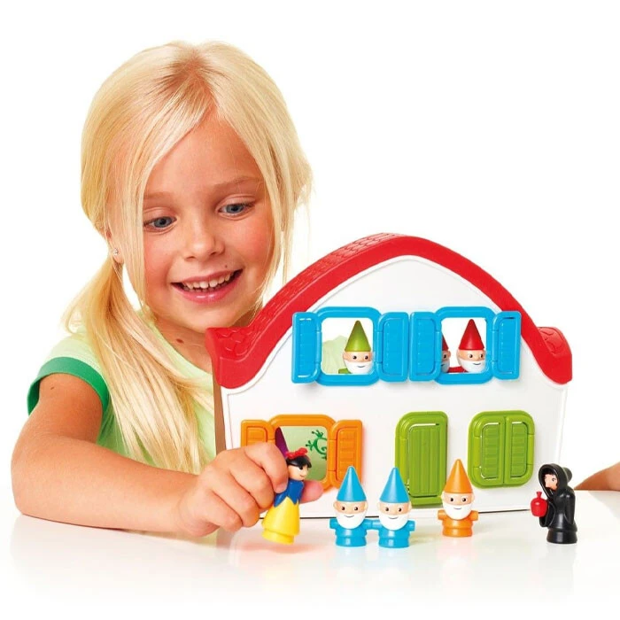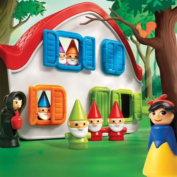 Het spel bevat 48 opdrachten, een kleurrijk 3D dwergenhuisje, Sneeuwwitje, een heks, 7 dwergen en uiteraard het prentenboekje.