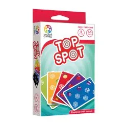 Speel dit kaartspel met vrienden en familie en scoor de meeste punten door kaarten slim te combineren. De speelkaarten van Top Spot bevatten gaten en stippen waarmee combinaties worden gemaakt. Speel dit spel met 3 tot 5 spelers voor gegarandeerd gezellige avonden! Bevat 65 speelkaarten met twee moeilijkheidsniveaus (junior en expert) waardoor Top Spot geschikt is voor jong en oud.