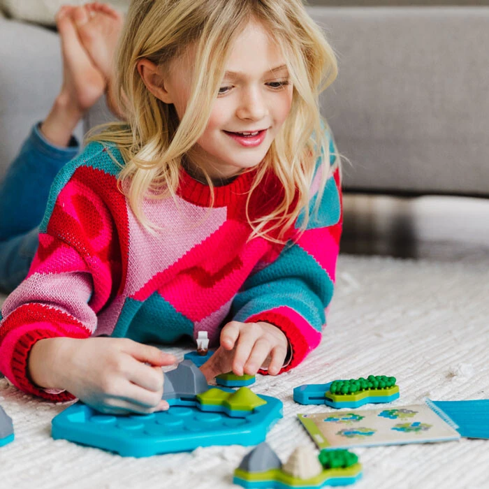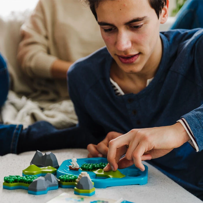 Kan jij de schatkaart ontcijferen? Gebruik logica en deductie, maar opgelet… Op dit eiland kunnen de puzzelstukken van vorm veranderen! Enkel wanneer je de stukken met bergen, heuvels en bossen op de juiste plaats legt, vind je de tempel met de schat. Met 80 uitdagingen die je naar het einde van de wereld brengen.