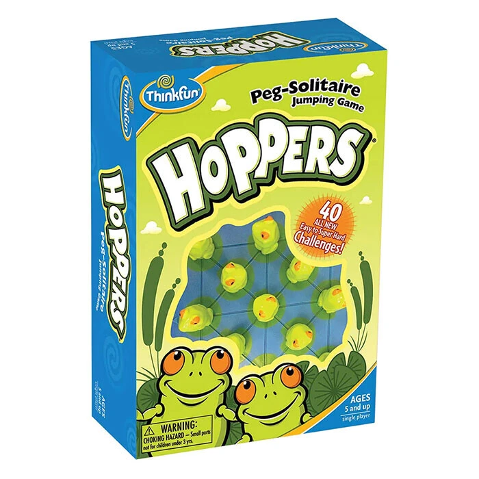 Hoppers is een solitair spel. De bedoeling van hoppers is dat alleen de rode kikker over blijft. Als je over een kikker heen springt, dan verdwijnt deze van het spelbord.