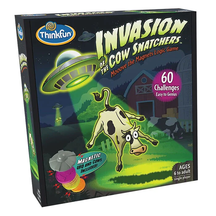 Veel plezier met het omhoog stralen van koeien met de magnetische UFO! Navigeer over en om boerderijhindernissen heen om eenvoudige tot zeer moeilijke uitdagingen op te lossen, en test je vaardigheden met extra ‘Genie level’ uitdagingen. Invasion of the Cow Snatchers bevat maar liefst 60 uitdagingen.