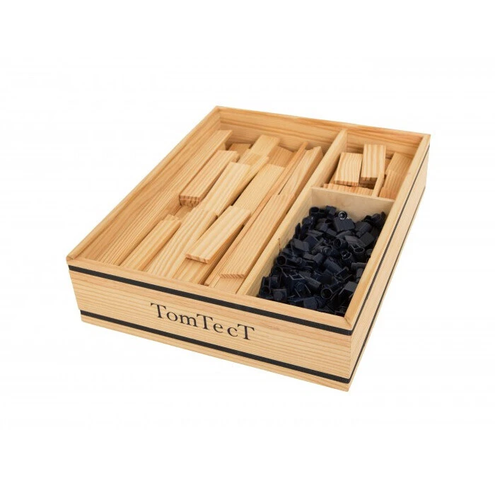 Deze houten kist bevat 500 onderdelen, bestaande uit 180 plankjes in 7 verschillende lengtes en 320 koppelstukjes in vier verschillende uitvoeringen: 60 kleine klemmen, 150 grote klemmen en 80 dubbele klemmen. Nieuw zijn de 30 ‘triple-klemmen’, koppelstukjes waarmee drie plankjes aan elkaar verbonden kunnen worden. Tevens bevat deze kist een inspiratieboekje.
