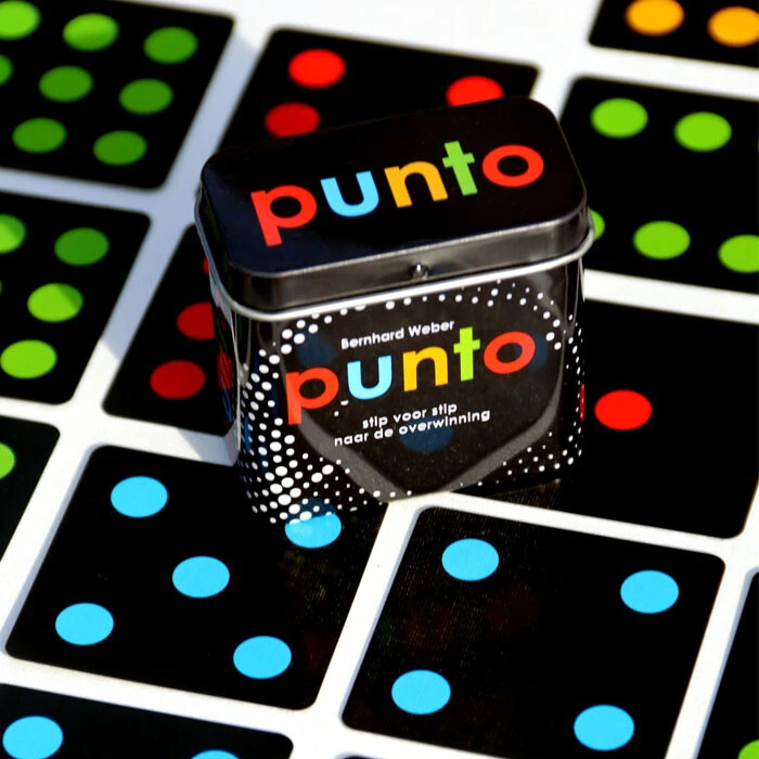 Met elke speelbeurt wordt er een kaart gespeeld waarmee geprobeerd wordt een lijn te verlengen of juist de tegenstander een hak te zetten. Punto is vergelijkbaar met vier-op-een-rij, maar biedt de mogelijkheid om het met zijn vieren te spelen. Ook is het mogelijk om kaarten bovenop andere te leggen waardoor spelers het elkaar erg lastig kunnen maken! De speler die als eerste een lijn van dezelfde kleur maakt, wint het spel.