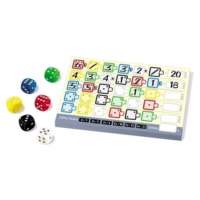 Iedere speler heeft een verschillend scorekaartje. De bedoeling is om zoveel mogelijk vakjes te scoren waarbij de kleur en het aantal ogen overeen komt; Een Voltreffer! Je mag pas getallen in de tweede rij aankruisen als je de eerst lijn volledig is ingevuld.